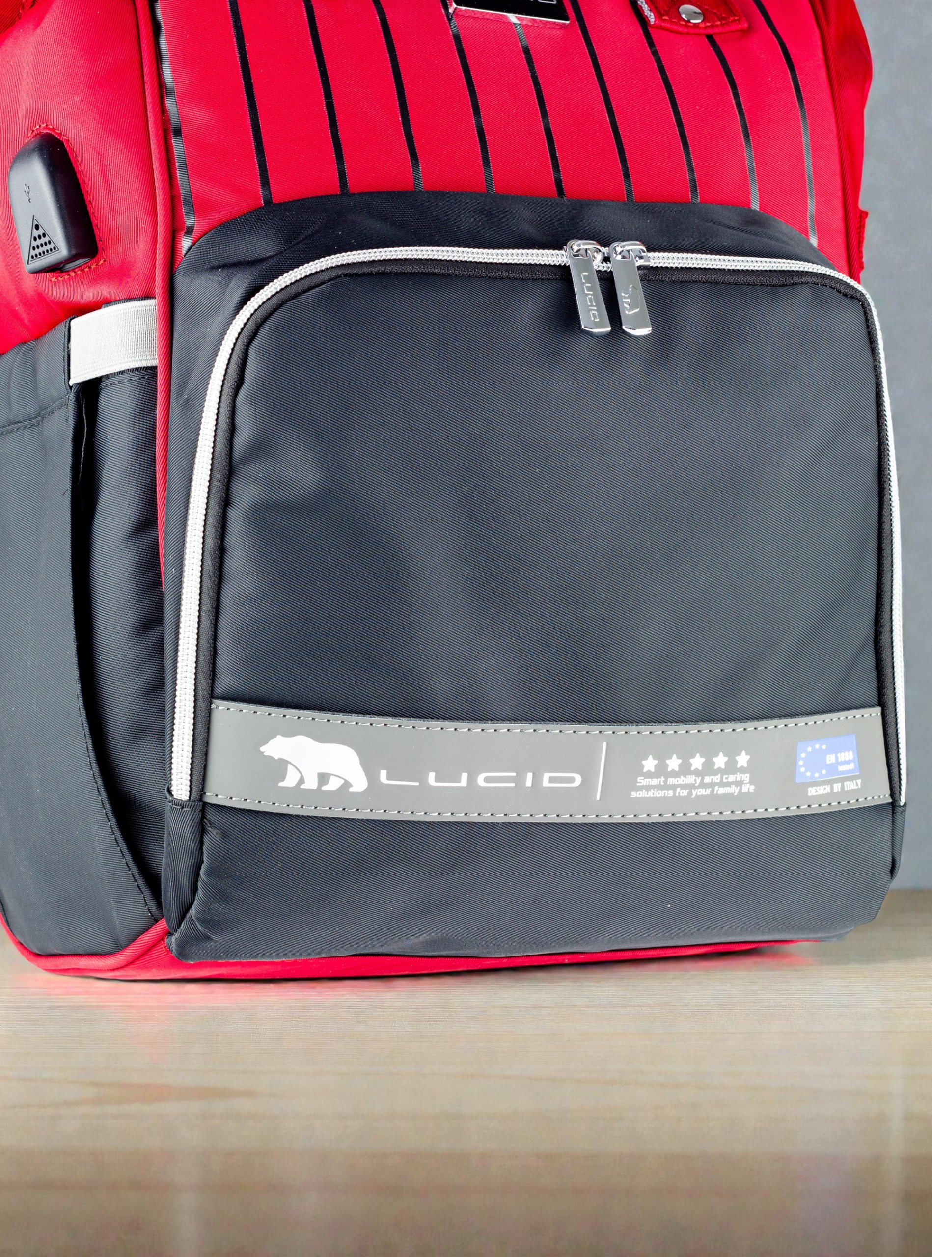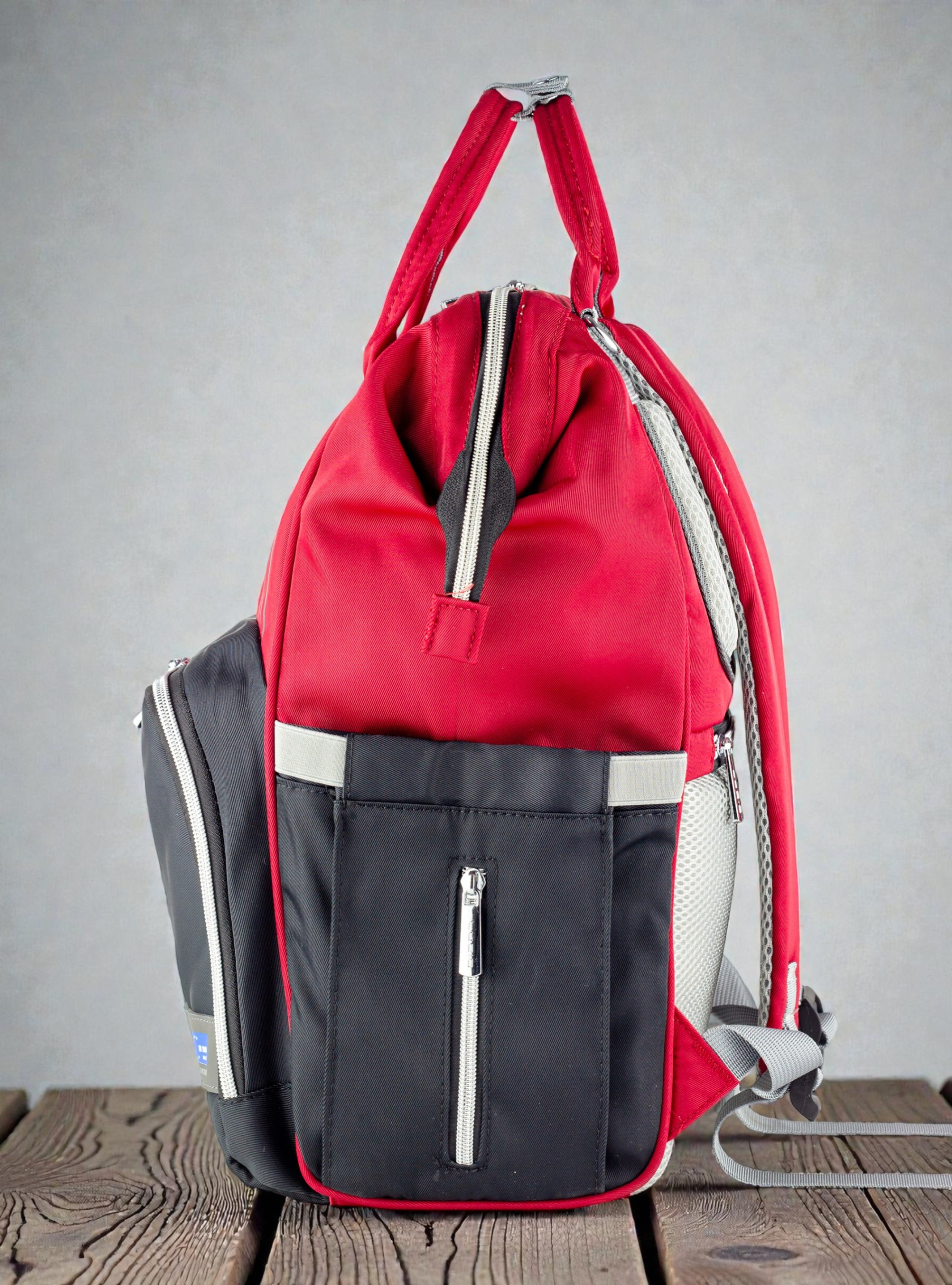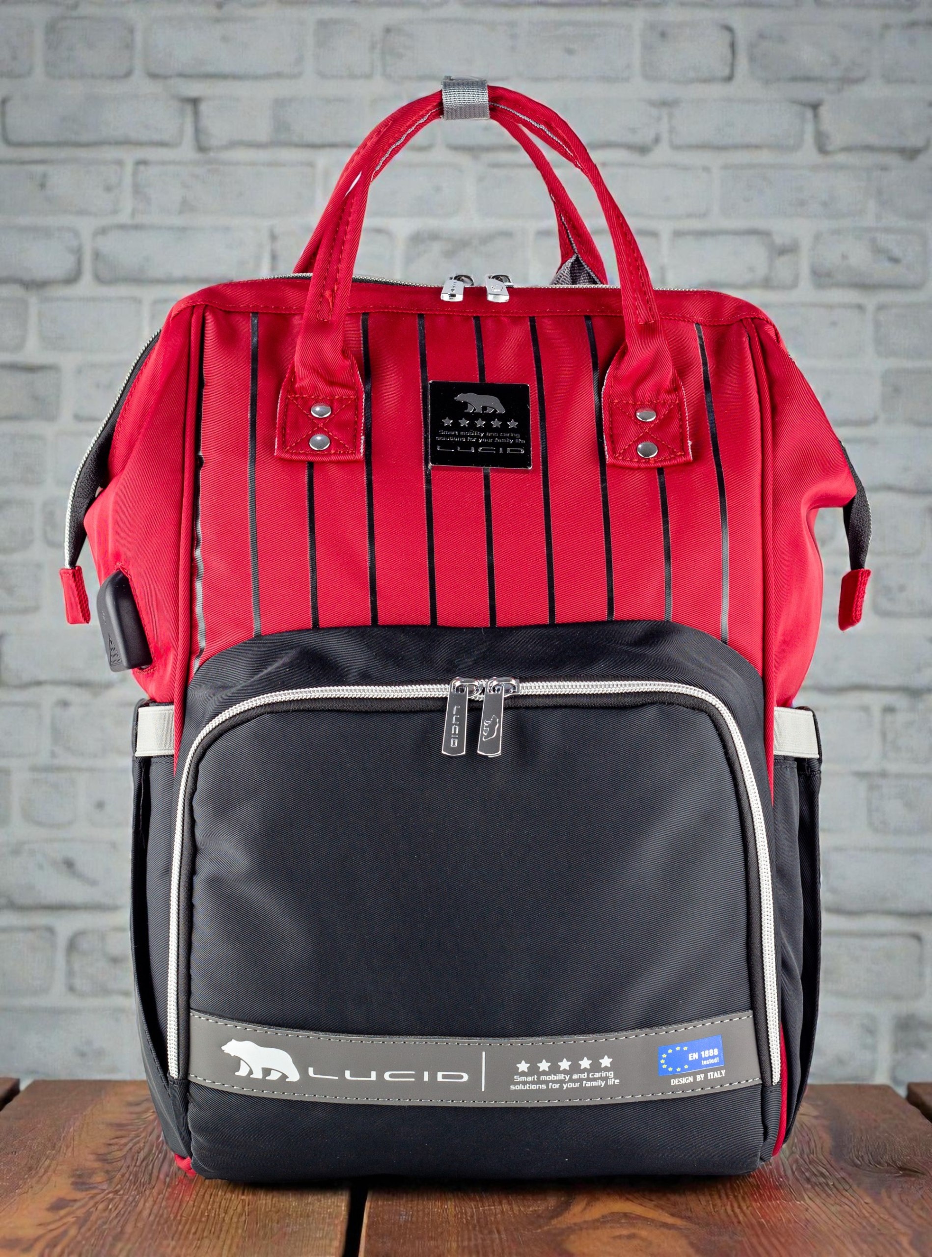 حقيبه لوازم الأمهات الإصدار الاحدث من لوسيد ومقاومة للمياه مع مفرش غيار وحافظه للببرونه حراريه بوصله تسخين ومزوده ببطانه طبيه للظهر-احمر