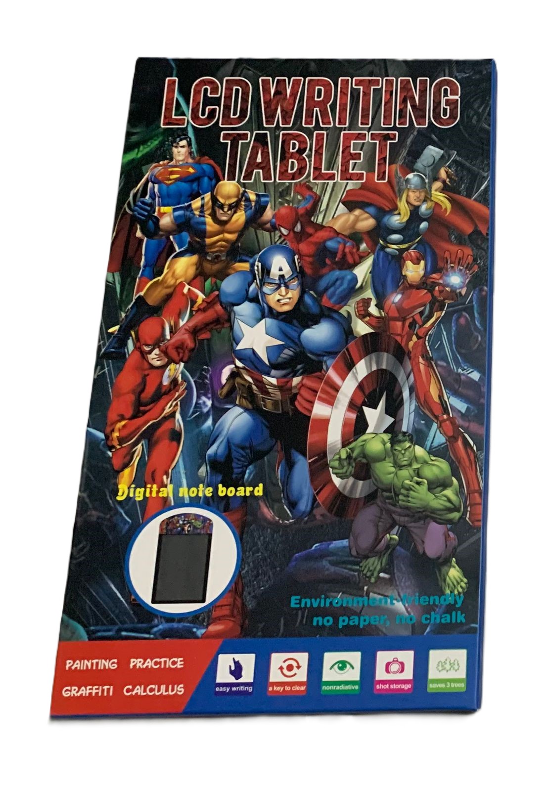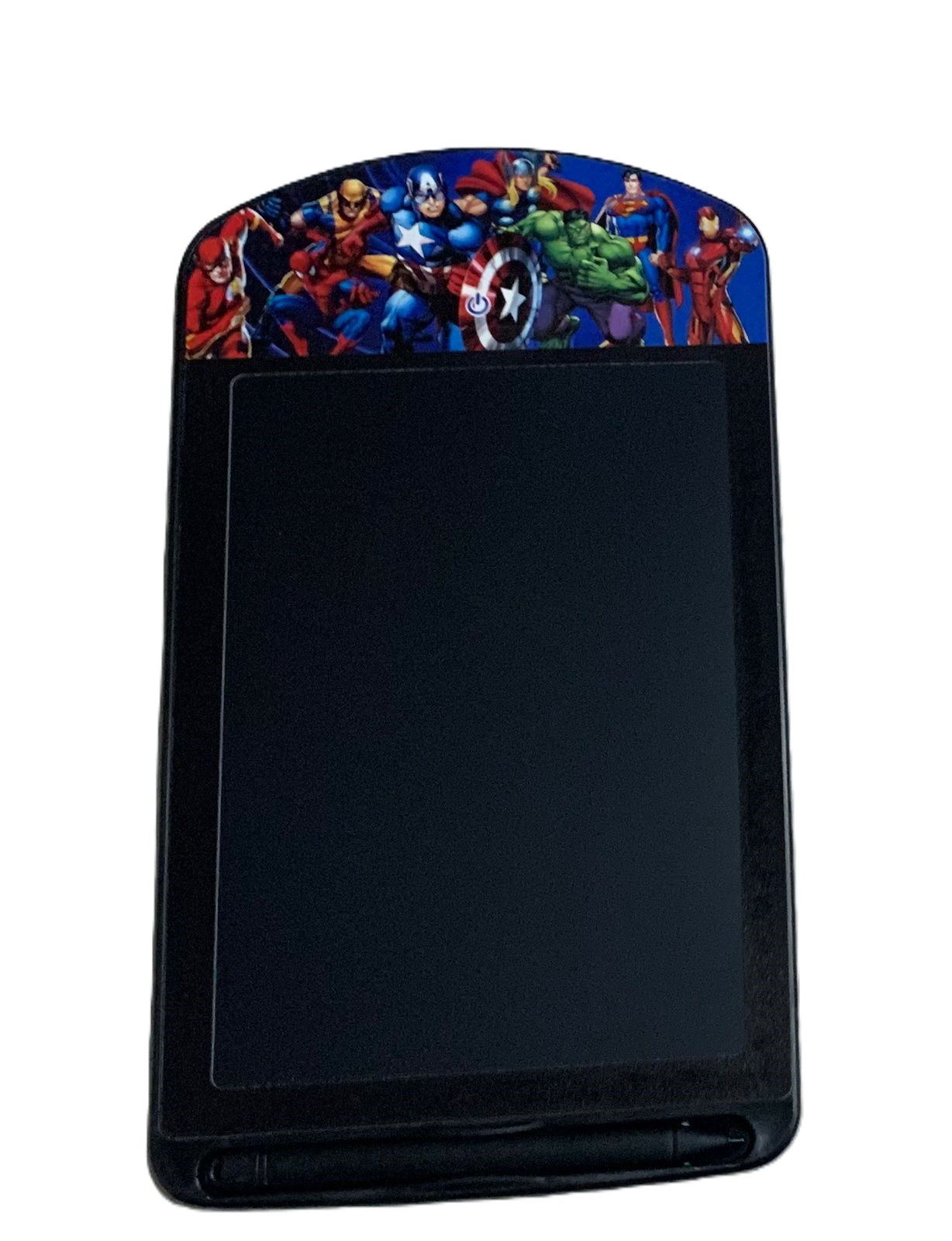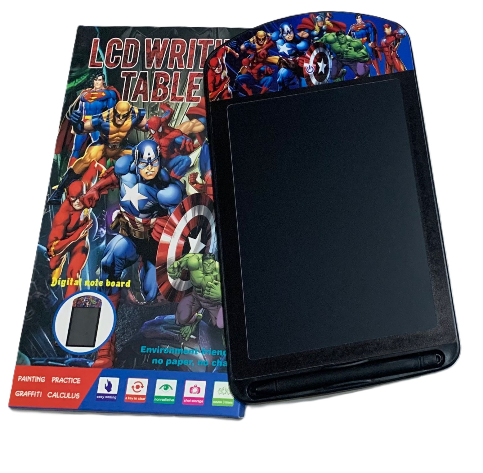 شجع طفلك على الإبداع والتعلم مع تابلت الكتابة والرسم LCD بتصميم أبطال خارقين. جهاز عملي وآمن يساعد الأطفال على التدريب على الكتابة والرسم، مع زر لمسح الشاشة بسهولة تامة. صديق للبيئة لأنه يغني عن الورق والألوان، وخفيف الوزن ليسهل حمله في أي مكان. مثالي للاستخدام في المدرسة، البيت أو أثناء السفر.