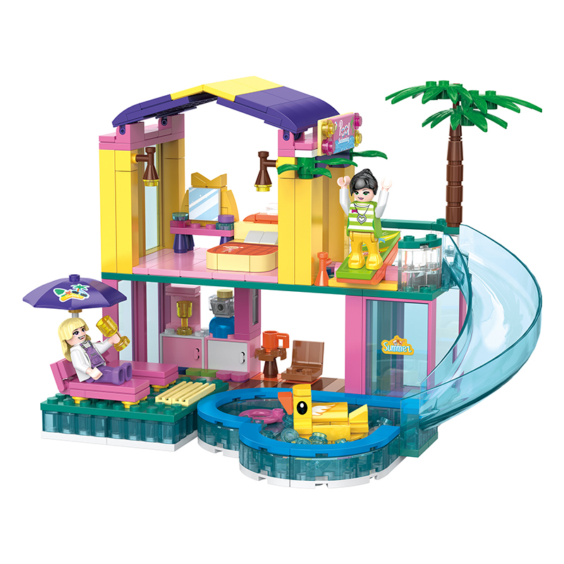 تشمل: قطع بناء – شخصيات – منزلق مائي – أثاث وملحقات شاطئية